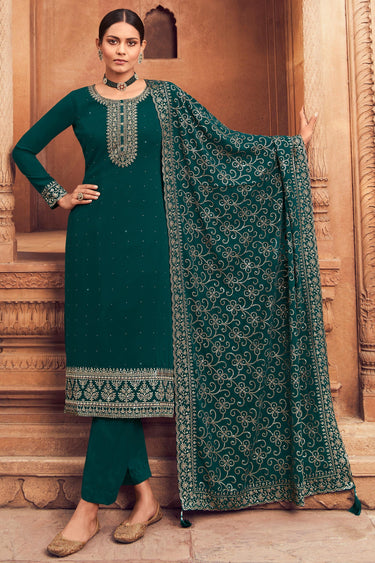 Festive Wear Embroidered Georgette Fabric Palazzo Suit In Teal Color