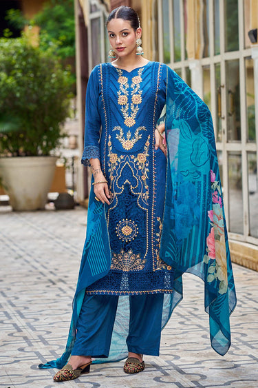 Festive Wear Embroidered Salwar Suit In Muslin Fabric