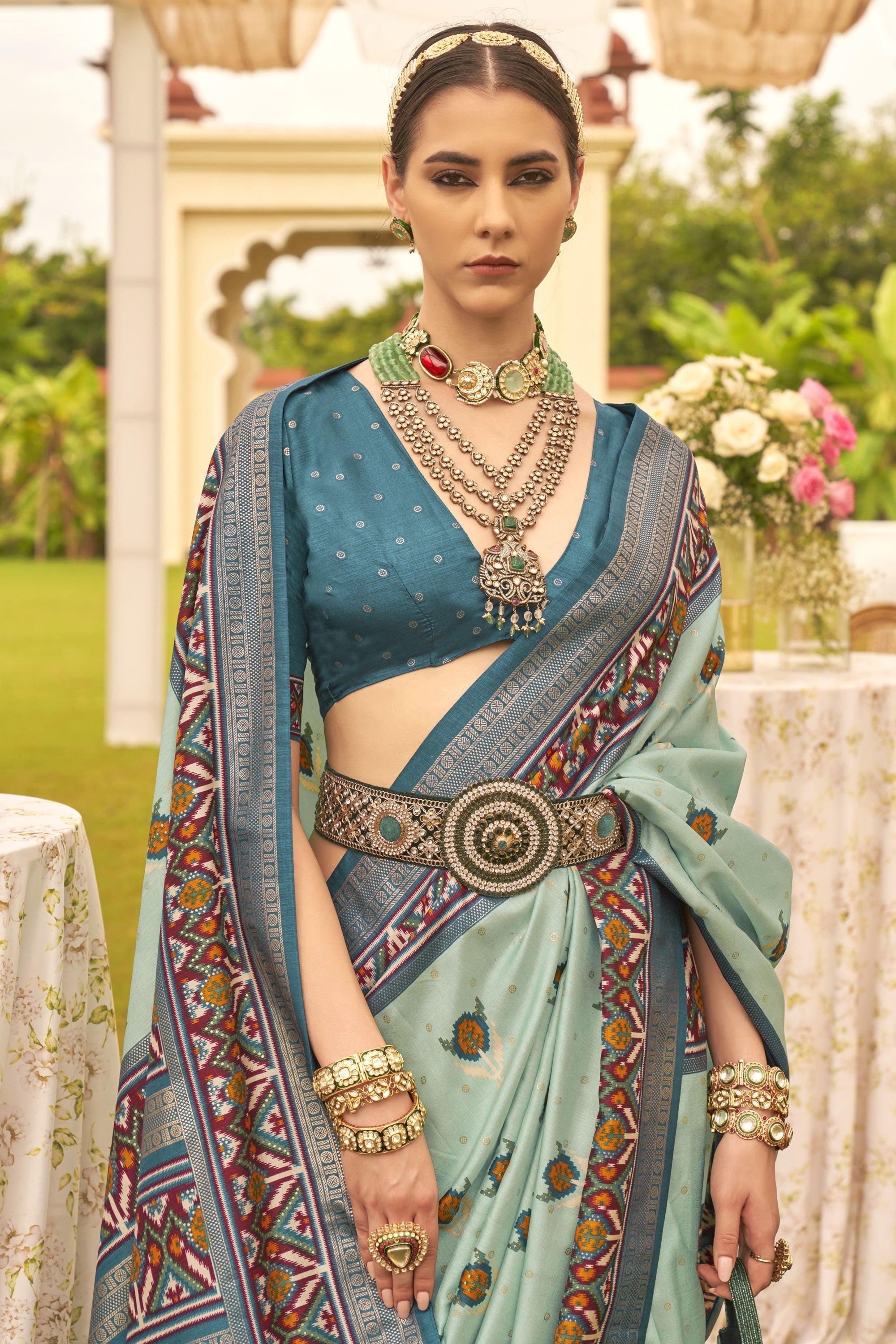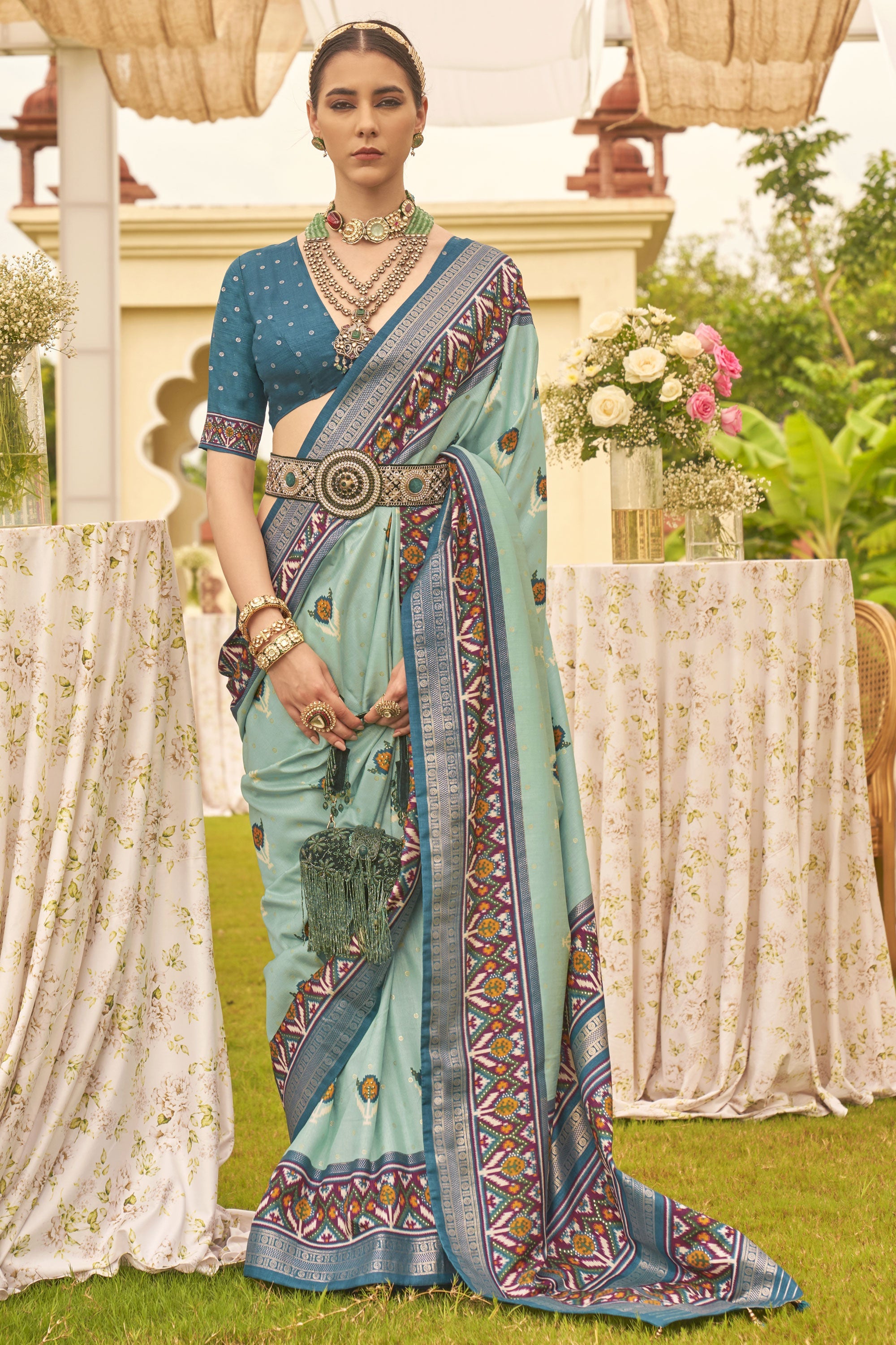 Exude pure class with Reach's Color Printed Function Wear Patola Silk Saree. This saree features a distinctive color print that echoes the rhythm of traditional Indian festivities. Fabricated from luxurious Patola silk, it provides an exemplary combination of elegance and comfort. This artistic creation is a wonderful choice for functions where you wish to leave an enduring impression.