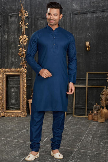 Festive Wear Readymade Kurta Pyjama For Men In Blue Cotton Fabric