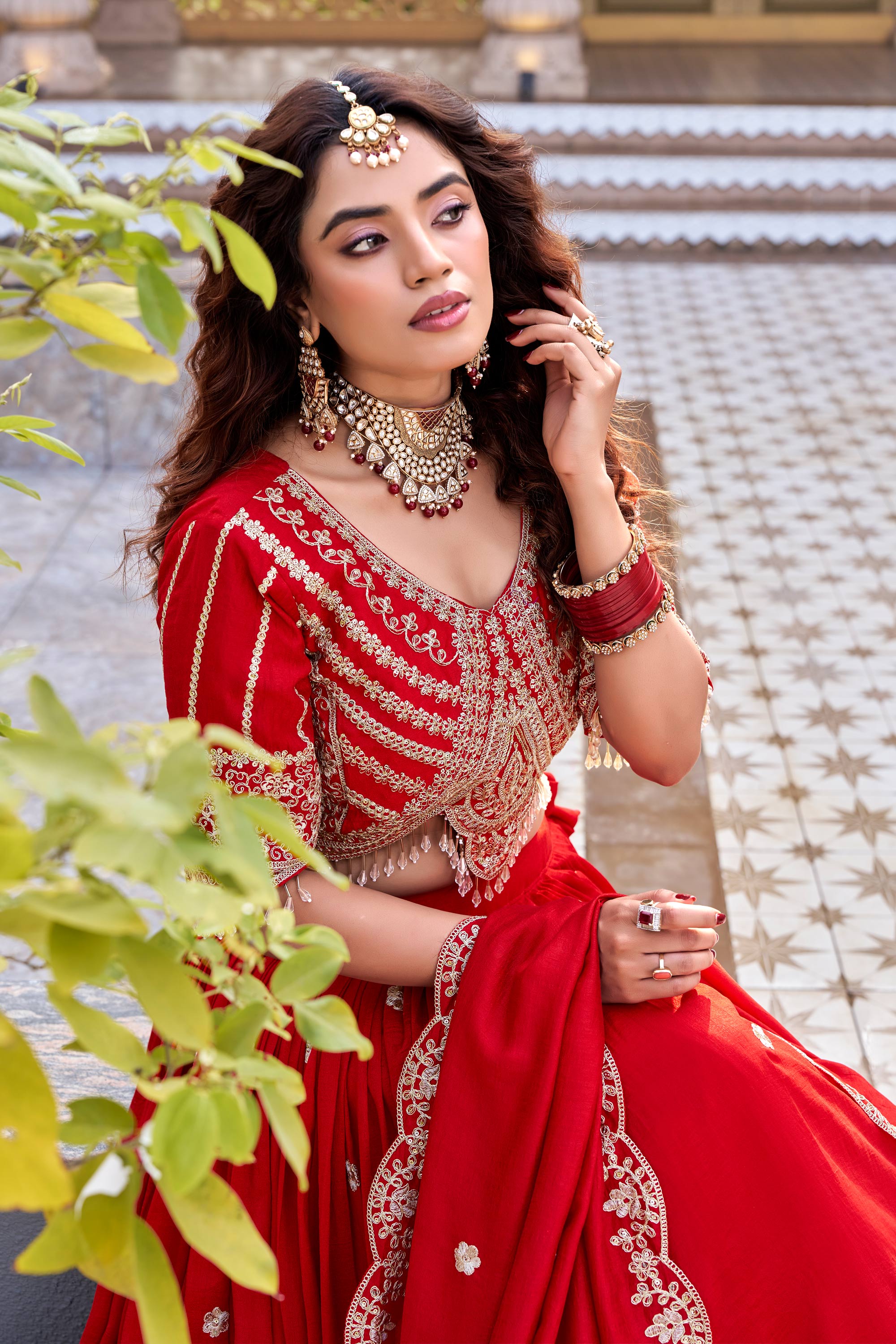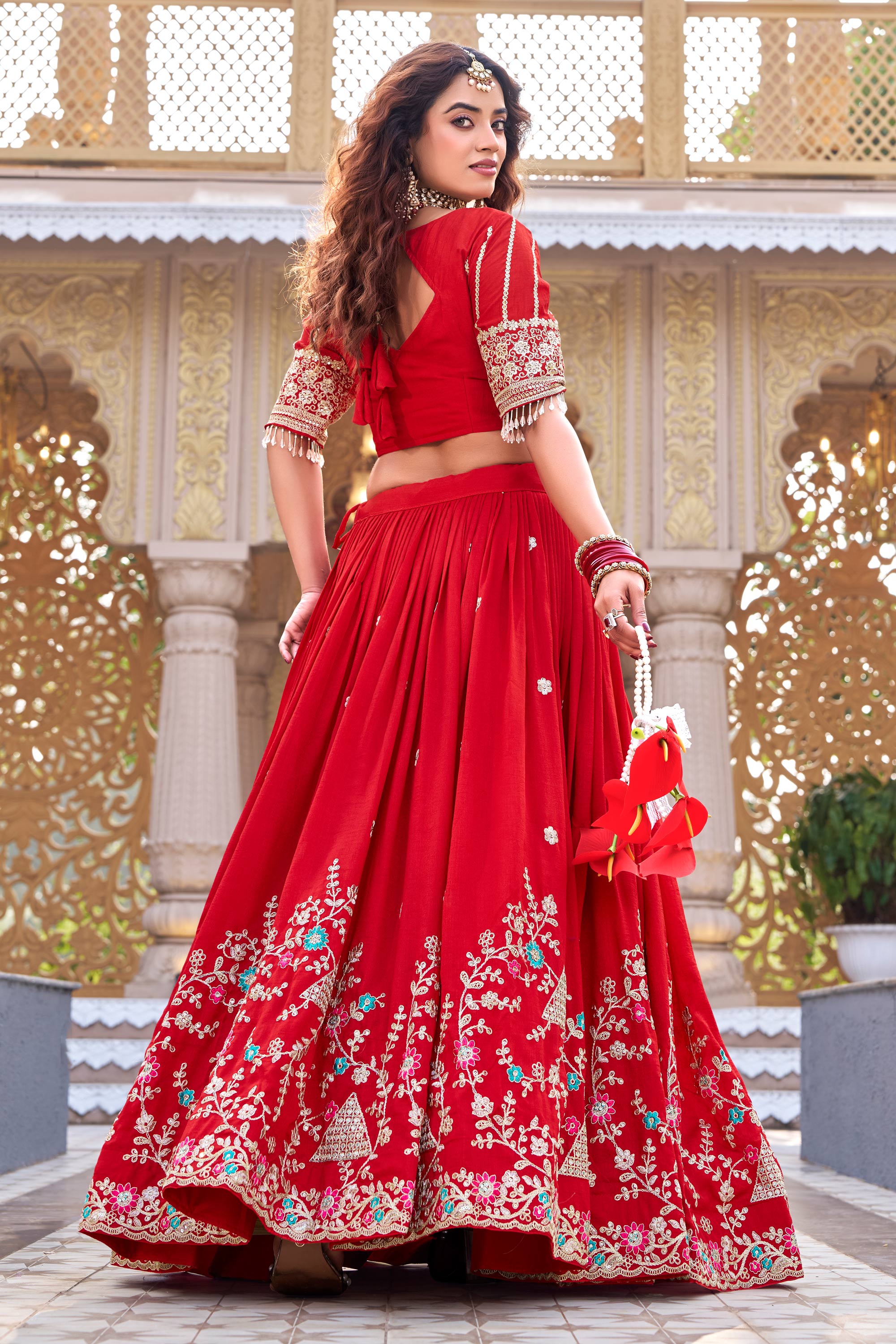 Festive Wear Red Embroidered Art Silk Readymade Lehenga Choli