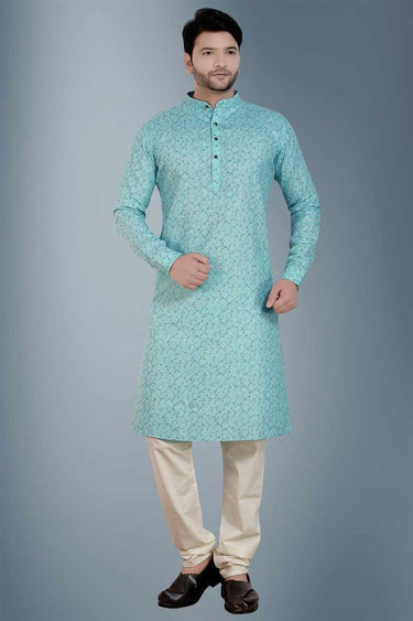 Fetching Linen Fabric Kurta Pyjama For Men In Cyan Color
