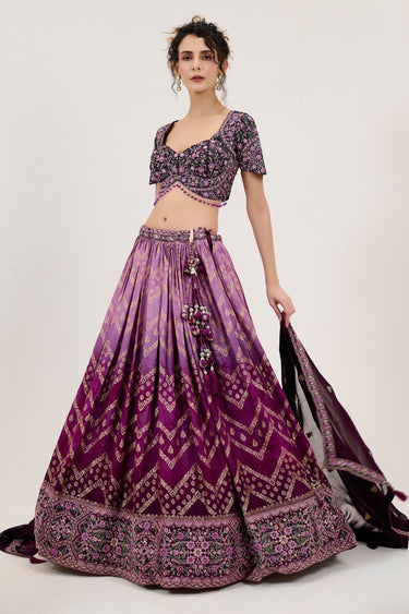 Flaming Purple Pure Jacquard Heavy Embroidered Bridal Readymade Lehenga Choli