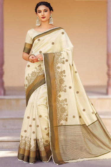 Flashing Beige Color Art Silk Fabric Embroidered Saree
