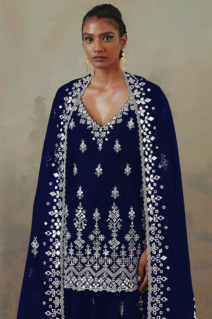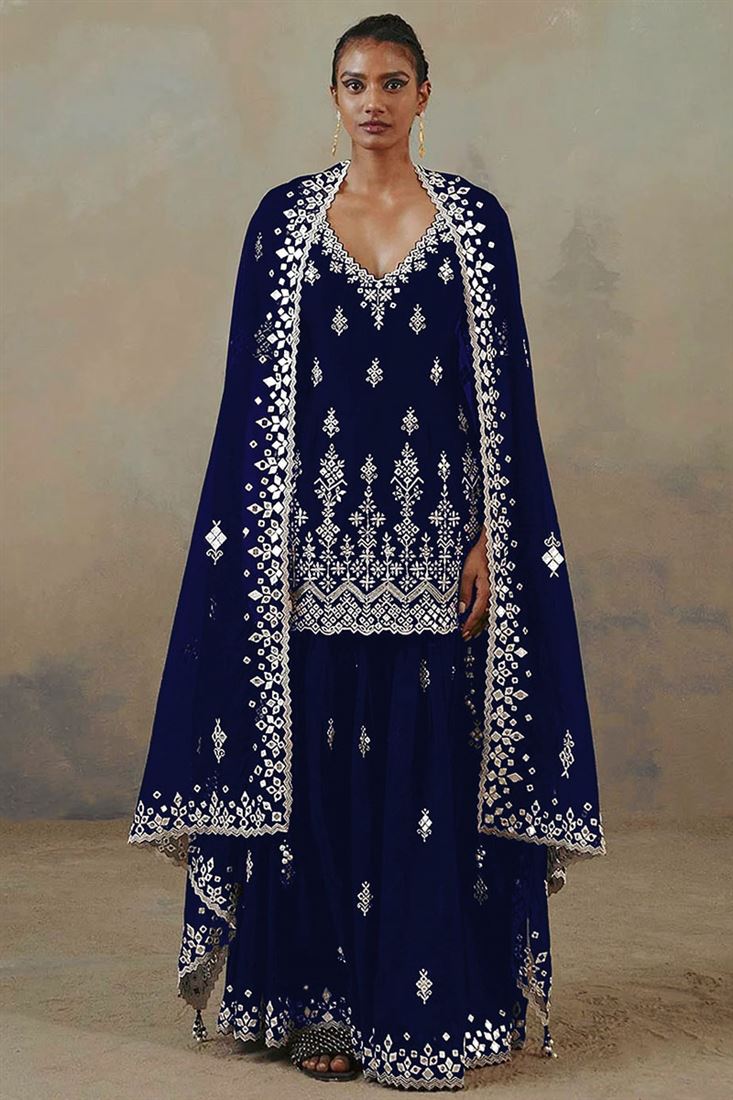 Function Wear Blue Color Attractive Palazzo Suit In Georgette Fabric
