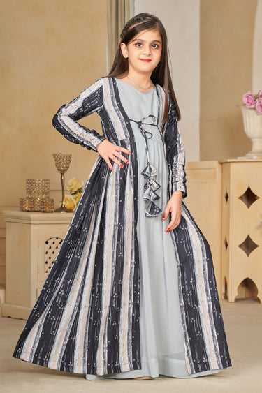 Function Wear Georgette Fabric Grey Color Captivating Readymade Kids Gown With Shrug