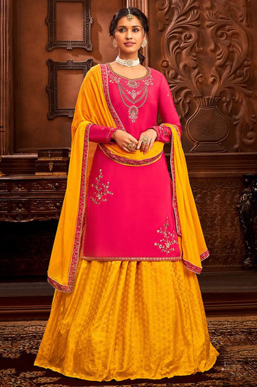 Function Wear Jacquard Fabric Mustard Color Embroidered Work Sensational Sharara Top Lehenga