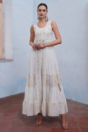 Georgette Designer Embroidered Readymade Anarkali Salwar Suit In Off White Color