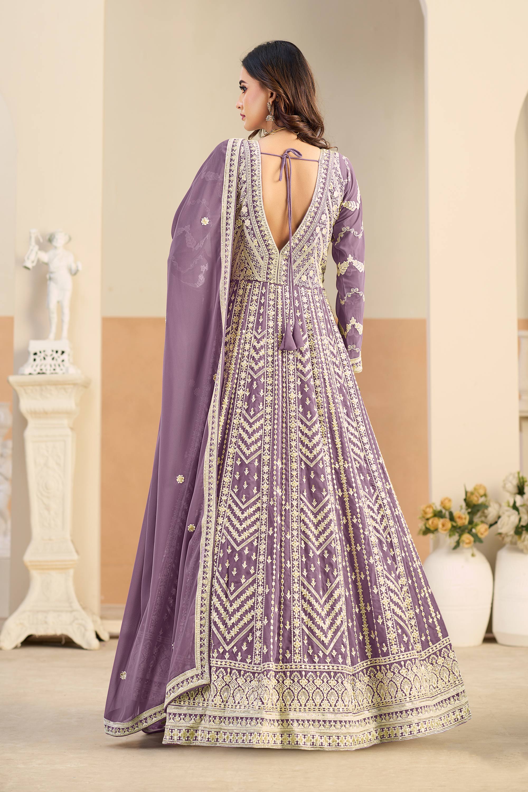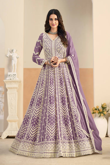 Georgette Embroidered Purple Function Wear Anarkali Suit