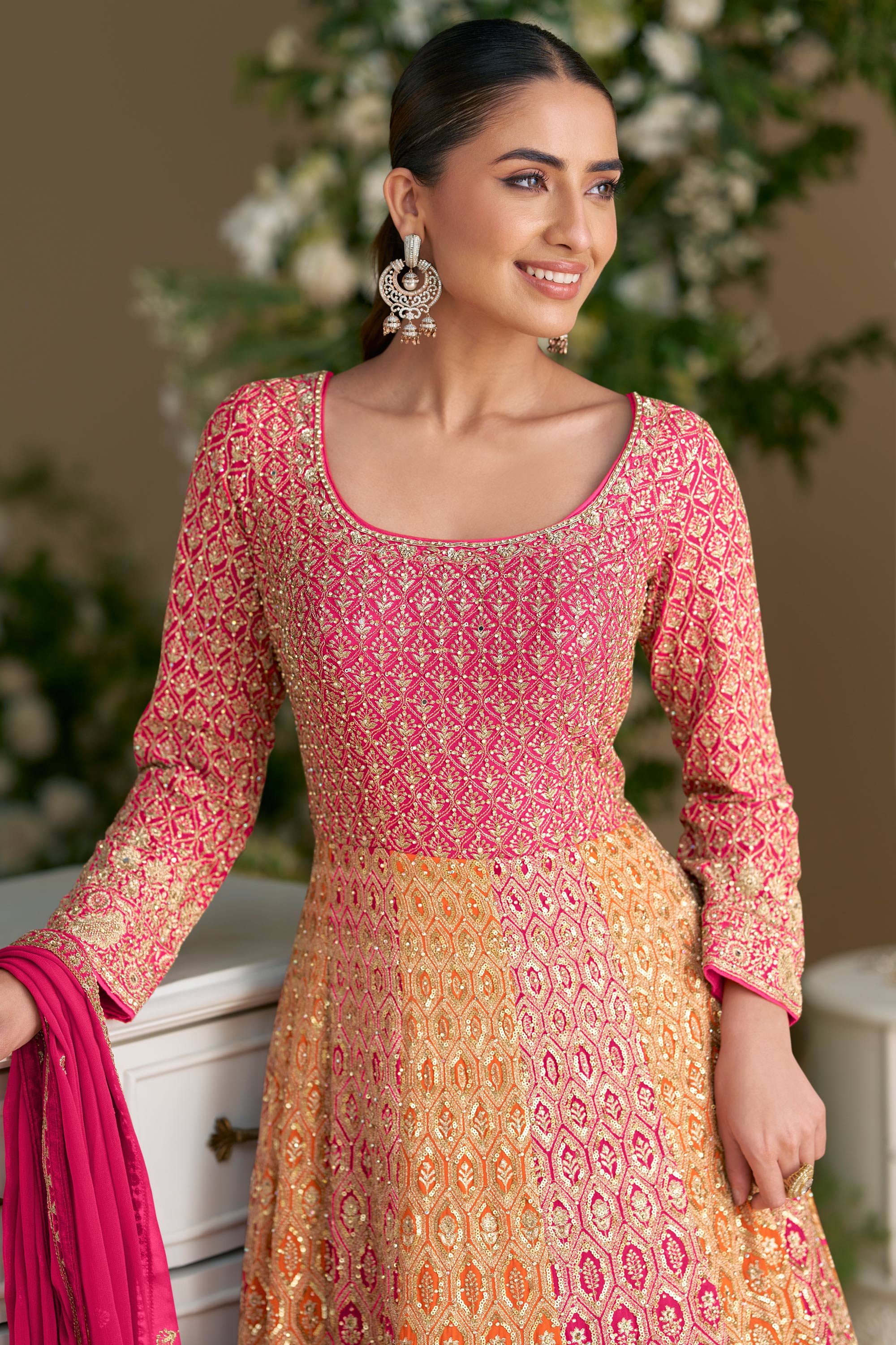 Georgette Embroidered Designer Anarkali Salwar Kameez - Add a touch of tradition to your wardrobe with this exquisite piece. Made from premium georgette, the embroidery work reflects artistry and sophistication. This outfit is perfect for family events, celebrations, or evening functions, offering a blend of modern style and cultural appeal. The Anarkali cut provides a graceful flow, creating an outfit that enhances your elegance. Easy to maintain and comfortable for prolonged wear, it’s a versatile addition to your collection. Complete your look with stylish bangles and a clutch for an unforgettable appearance. Available in multiple vibrant hues and inclusive sizing options.
