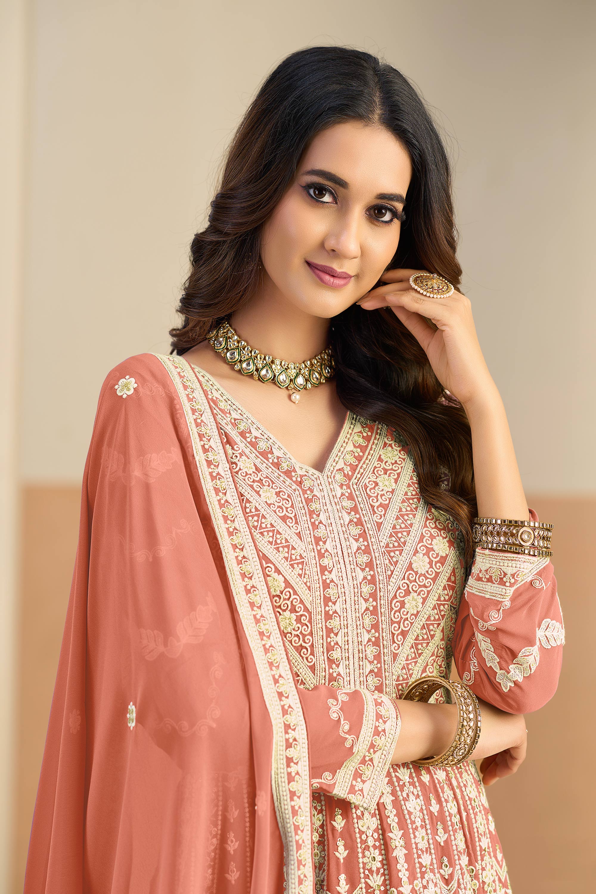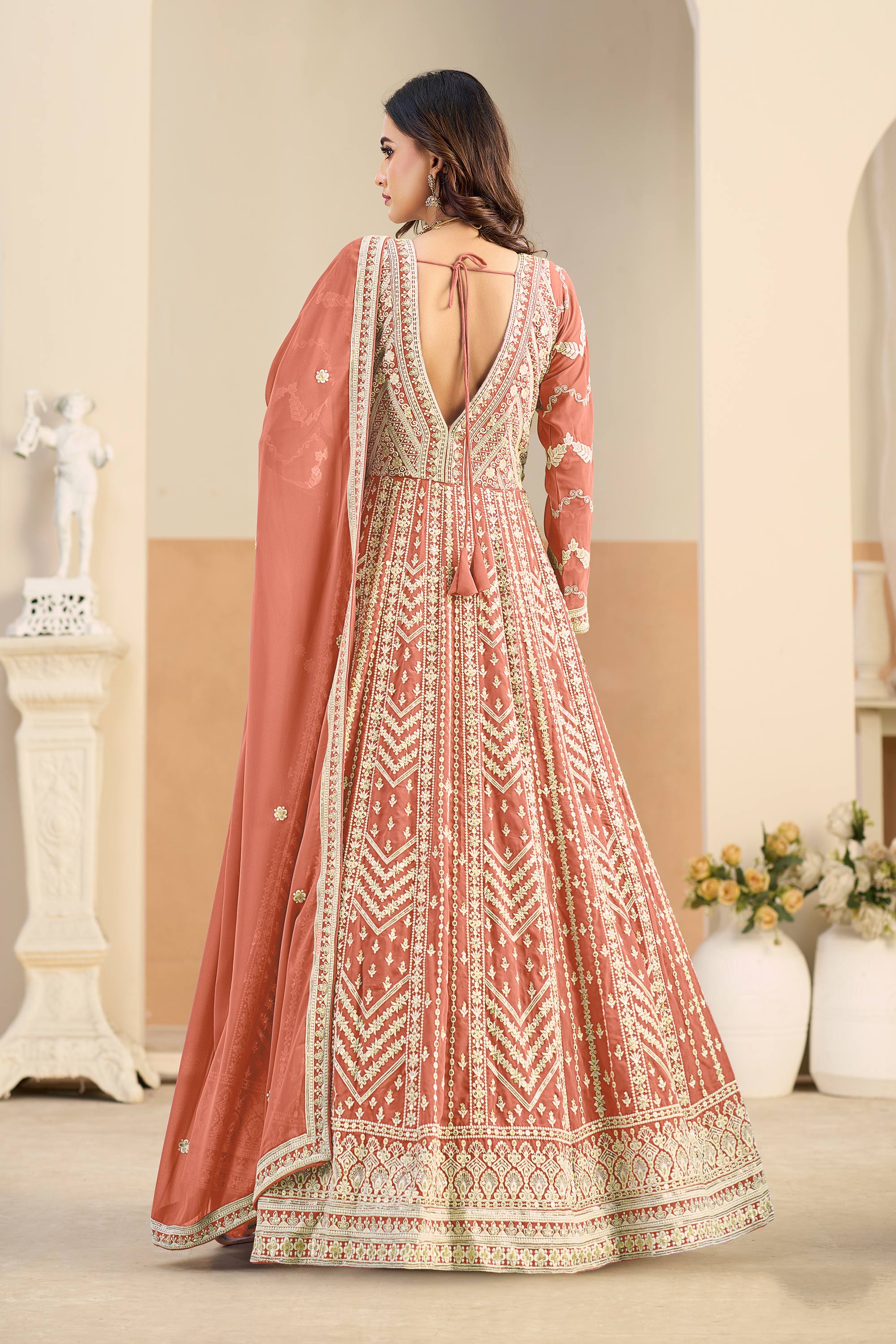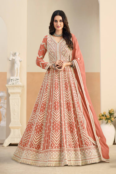 Georgette Embroidered Rust Function Wear Anarkali Suit