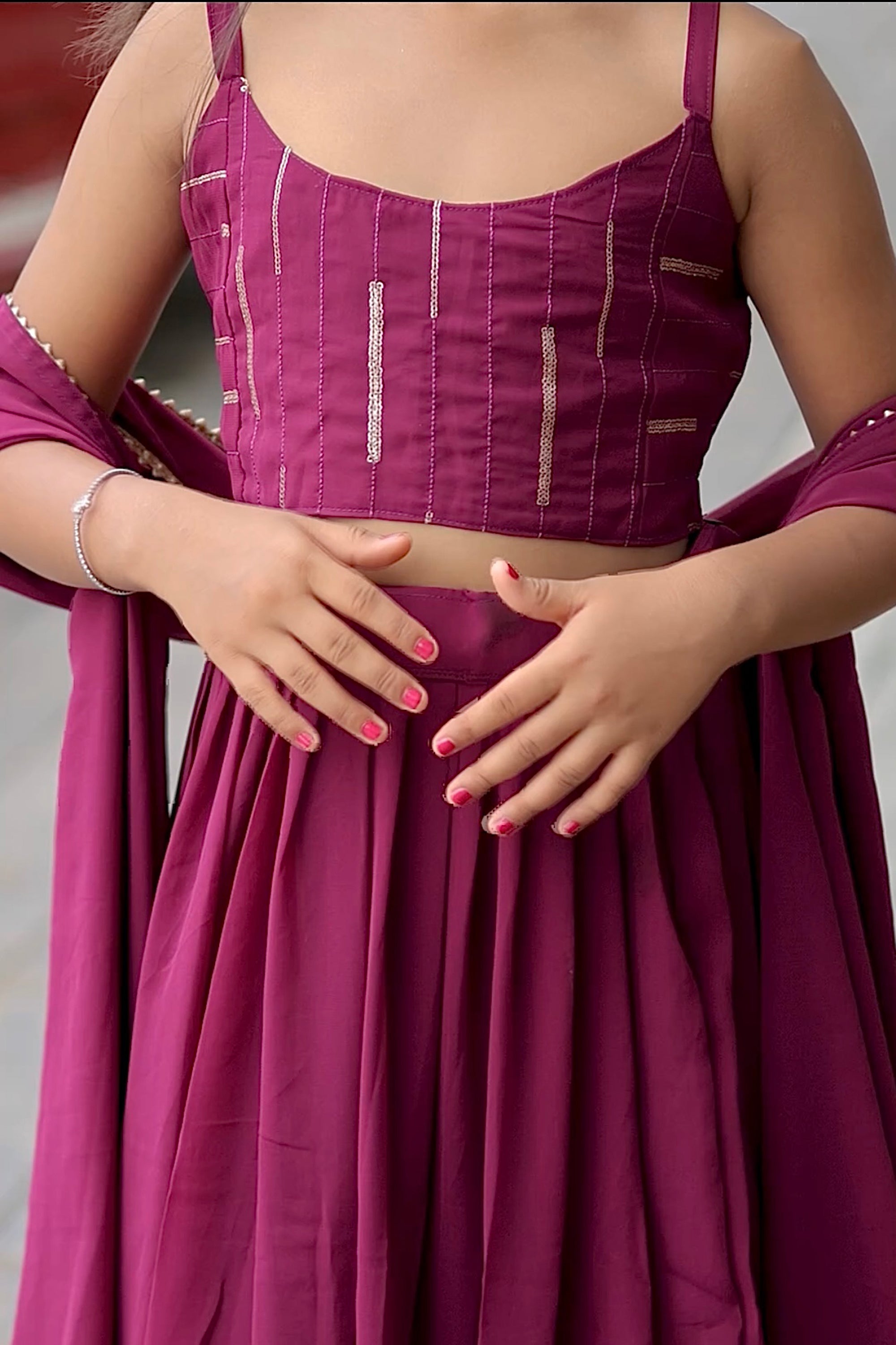 Georgette Engaging Magenta Color Festive Wear Sequins Work Readymade Kids Lehenga Choli