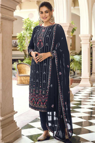 Georgette Fabric Beguiling Navy Blue Color Embroidered Salwar Suit