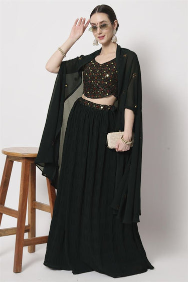 Georgette Fabric Dark Green Color Winsome Crush Lehenga
