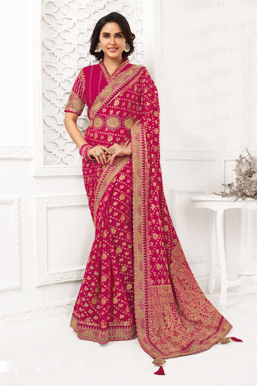 Make a statement and embrace the timeless beauty of our Georgette Embroidered Saree. Order yours today and experience the joy of wearing a truly remarkable piece of art. Add a touch of Pink Color to your wardrobe and let your style shine through.