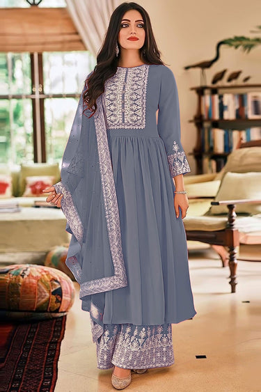 Georgette Fabric Grey Color Function Wear Elegant Pakistani Suit