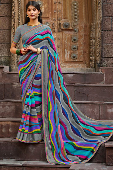 Georgette Fabric Grey Color Soothing Light Weight Printed Saree