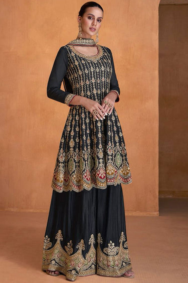 Georgette Fabric Navy Blue Color Festive Wear Embroidered Palazzo Salwar Kameez