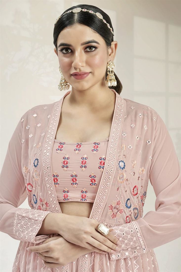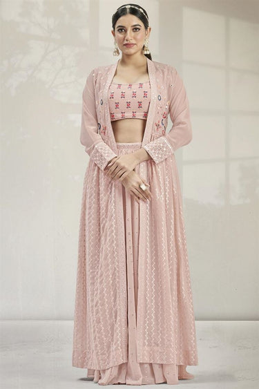 Georgette Fabric Peach Color Excellent Party Style Sharara Top Lehenga