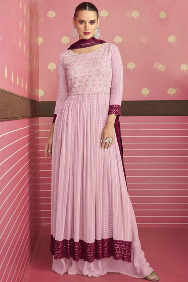 Georgette Fabric Pink Color Elegant Embroidered Work Palazzo Suit