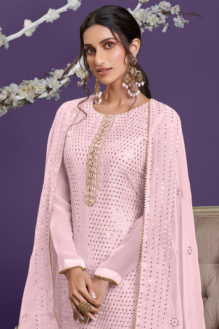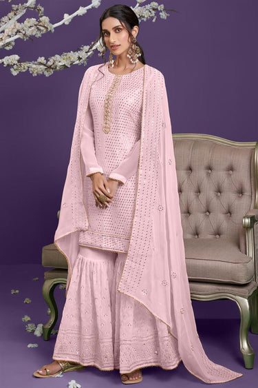 Georgette Fabric Pink Color Winsome Embroidered Sharara Suit