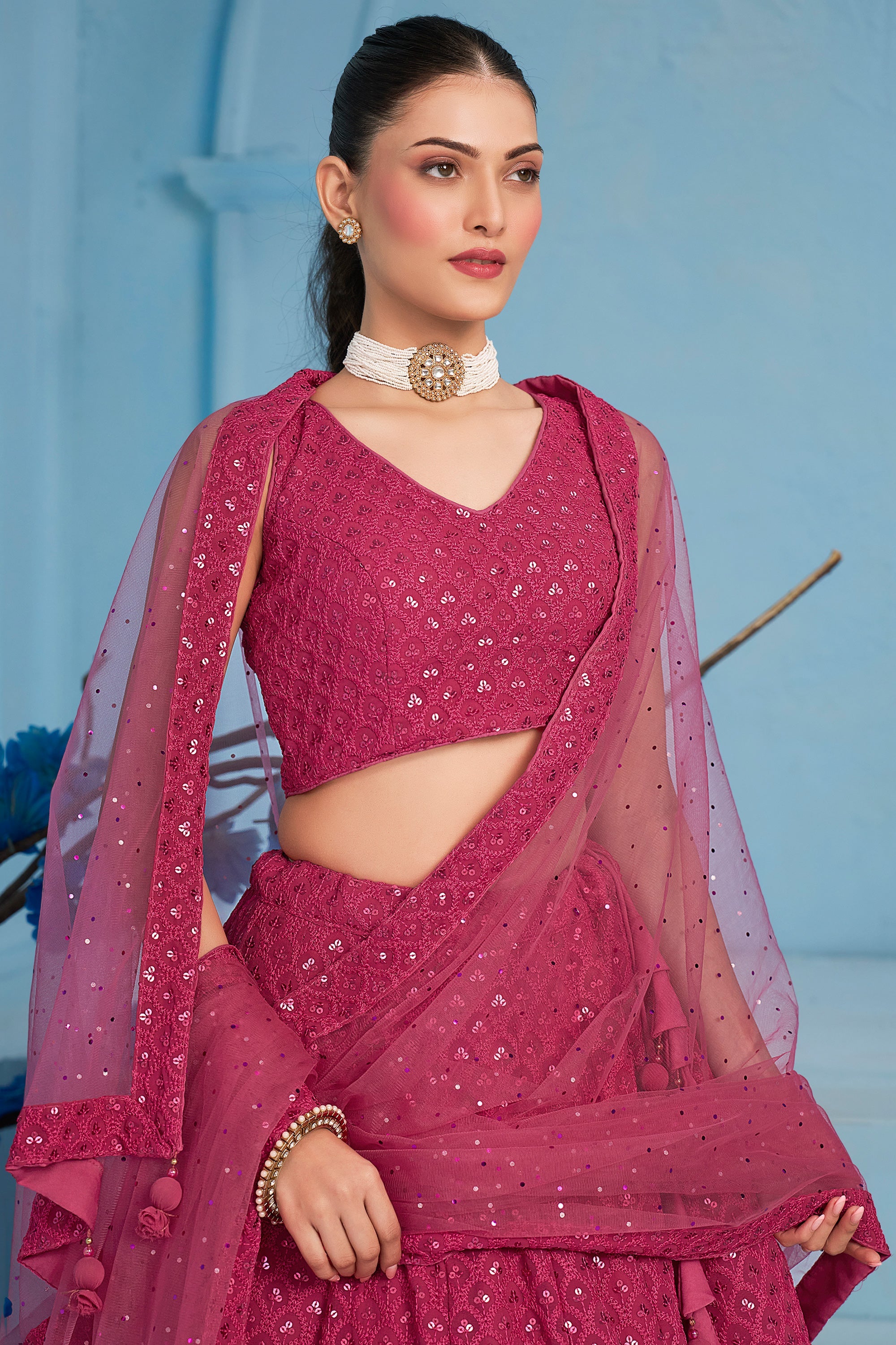 Georgette Fabric Sangeet Wear Lehenga Choli With Sequins Work In Pink Color