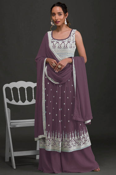 Georgette Lavender Embroidered Straight Palazzo Suit