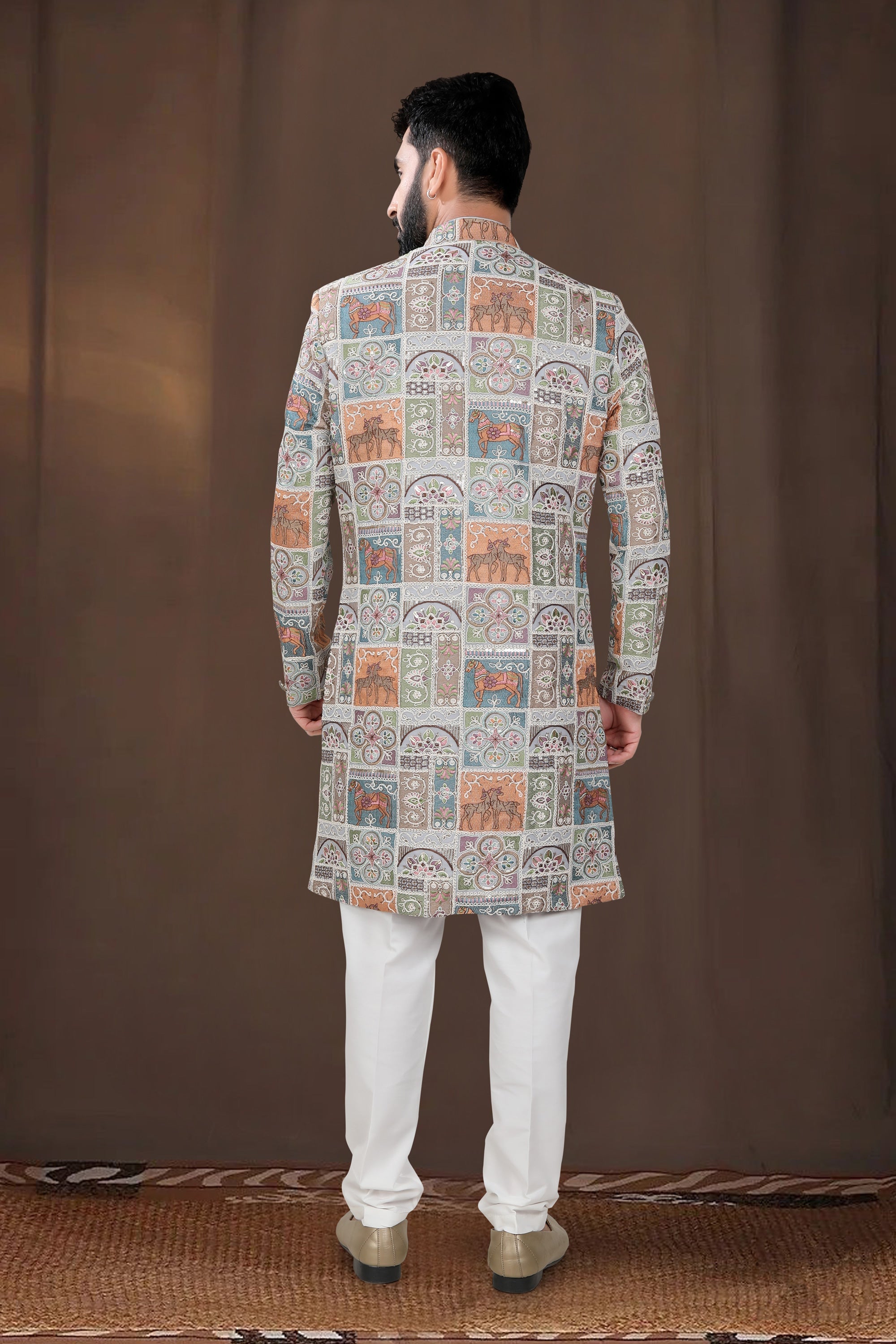 Georgette Light Blue Wedding Wear Designer Readymade Indo Western For Men