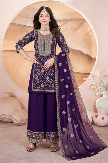 Georgette Purple Color Embroidered Readymade Palazzo Salwar Suit