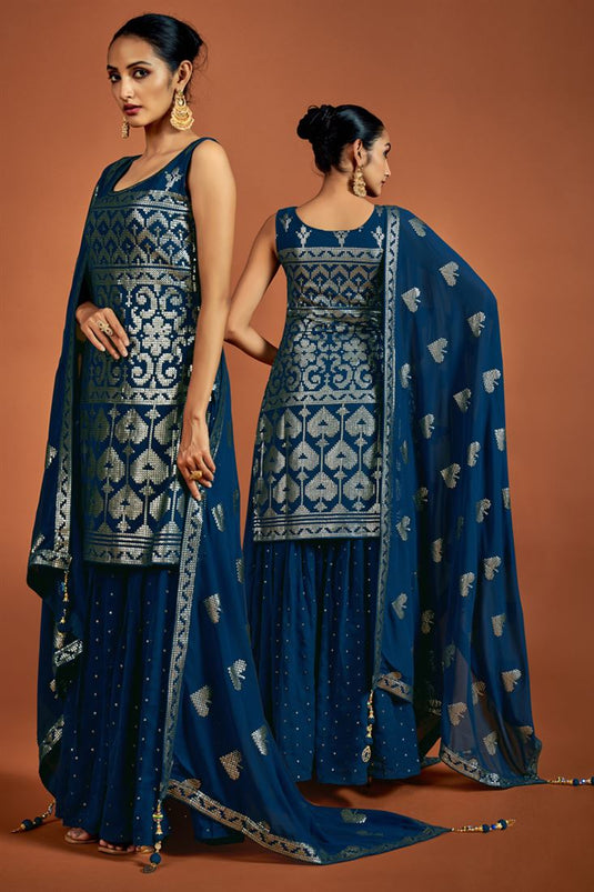 Georgette Sequins Navy Blue Straight Sharara Suit
