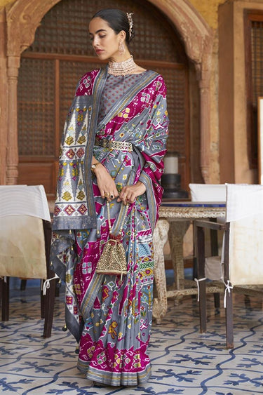Glamorous Art Silk Fabric Grey Color Patola Printed Saree