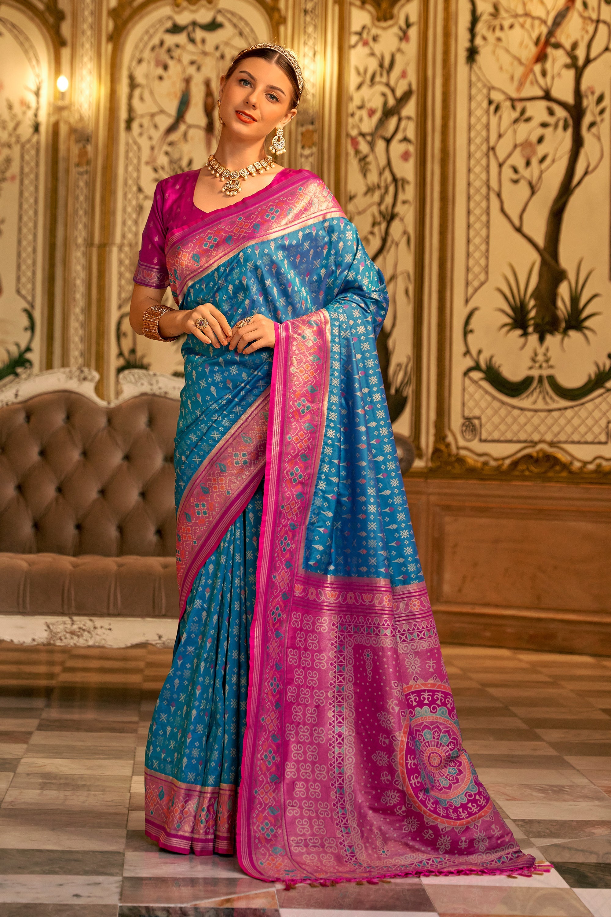 Glamorous Blue Color Weaving Designs Banarasi Silk Saree