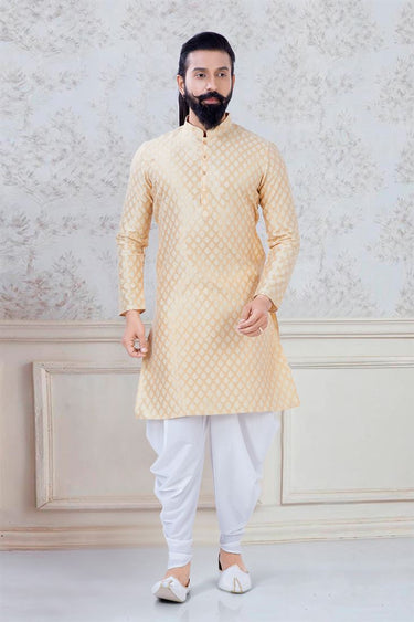 Glamorous Cream Color Jacquard Silk Fabric Function Wear Trendy Readymade Dhoti Style Kurta Pyjama For Men
