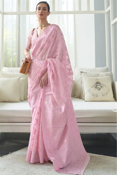 Glamorous Lucknowi Chikankari Work Party Style Cotton Silk Fabric Pink Color Saree