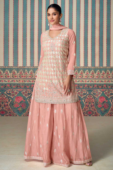 Glorious Peach Color Chinon Fabric Sharara Suit