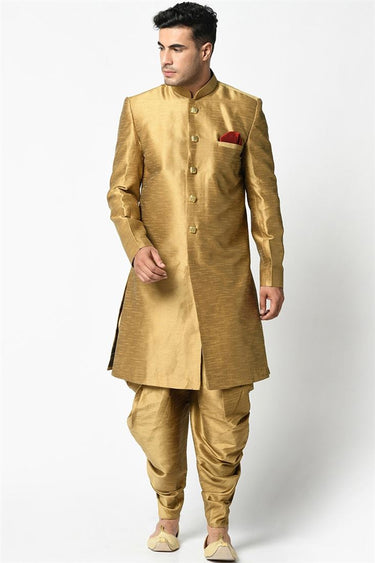 Golden Color Art Silk Fabric Reception Wear Stylish Readymade Dhoti Style Indo Western For Men