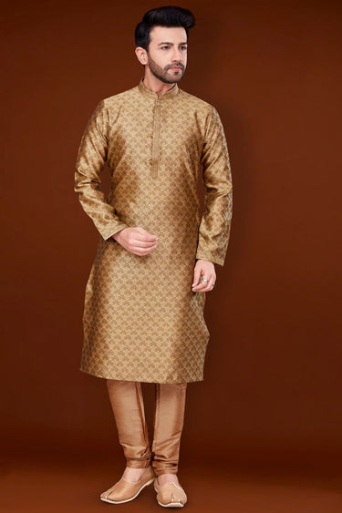 Golden Color Jacquard Fabric Coveted Kurta Pyjama For Men