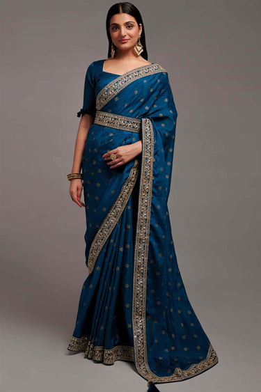 Graceful Blue Chinon Saree with Border Work