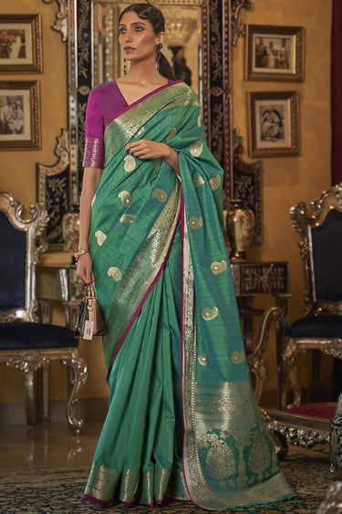 Green Color Art Silk Fabric Festival Wear Aloof Weaving Work Saree