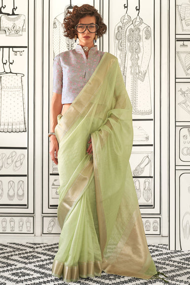 Green Color Exquisite Weaving Work Chiffon Silk Saree