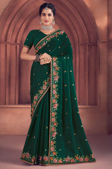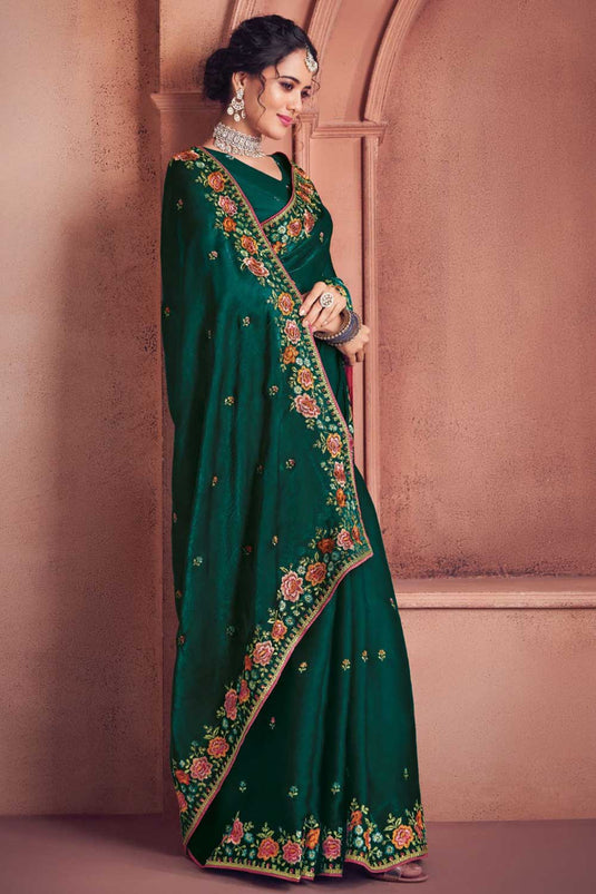 Green Color Gorgeous Organza Saree With Embroidered Work