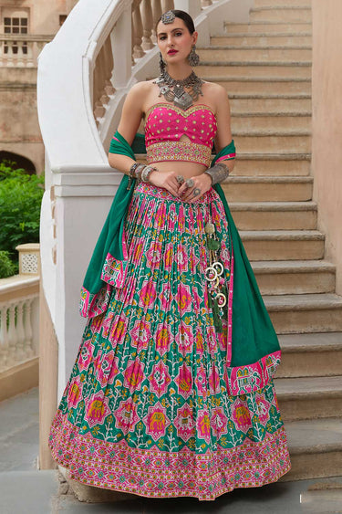 Step into the spotlight with this stunning Designer Lehenga crafted to make your special occasions unforgettable. Made from luxurious Art Silk, the lehenga exudes sophistication with its intricate printed work, perfectly blending traditional charm with contemporary flair. The matching Art Silk Choli complements the lehenga, creating a harmonious ensemble, while the flowing Georgette Dupatta adds a touch of grace with its lightweight appeal. Whether it's a function or a sangeet, this outfit is your go-to for effortless elegance. Fabric: Premium Art Silk for the Lehenga and Choli; lightweight Georgette for the Dupatta. Work: Exquisite printed design for a modern yet ethnic look. Occasion: Ideal for Functions and Sangeet celebrations. Please note: Slight color variations may occur due to digital photography, enhancing the uniqueness of each piece.Be ready to captivate hearts and create memories in this dazzling designer lehenga.