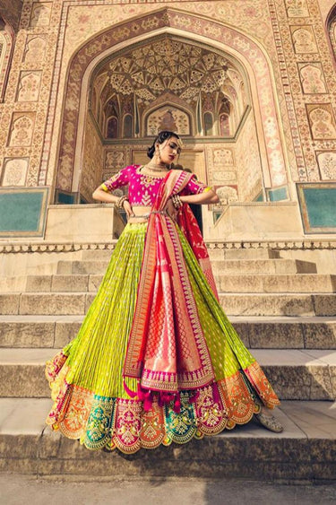 Green Color Wedding Wear Banarasi Silk Fabric Splendid Lehenga