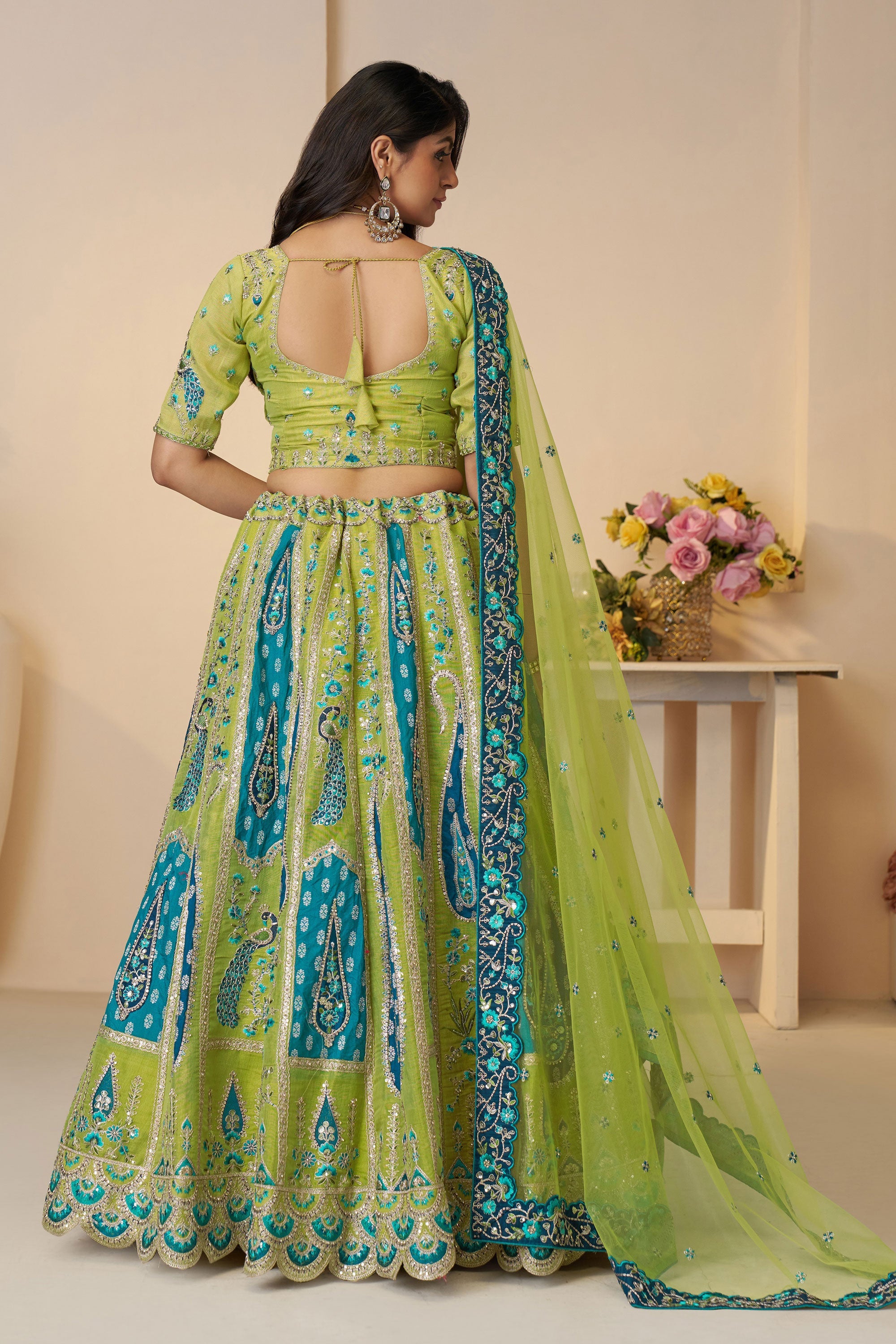 Green Designer Lehenga Choli In Banarasi Silk Fabric