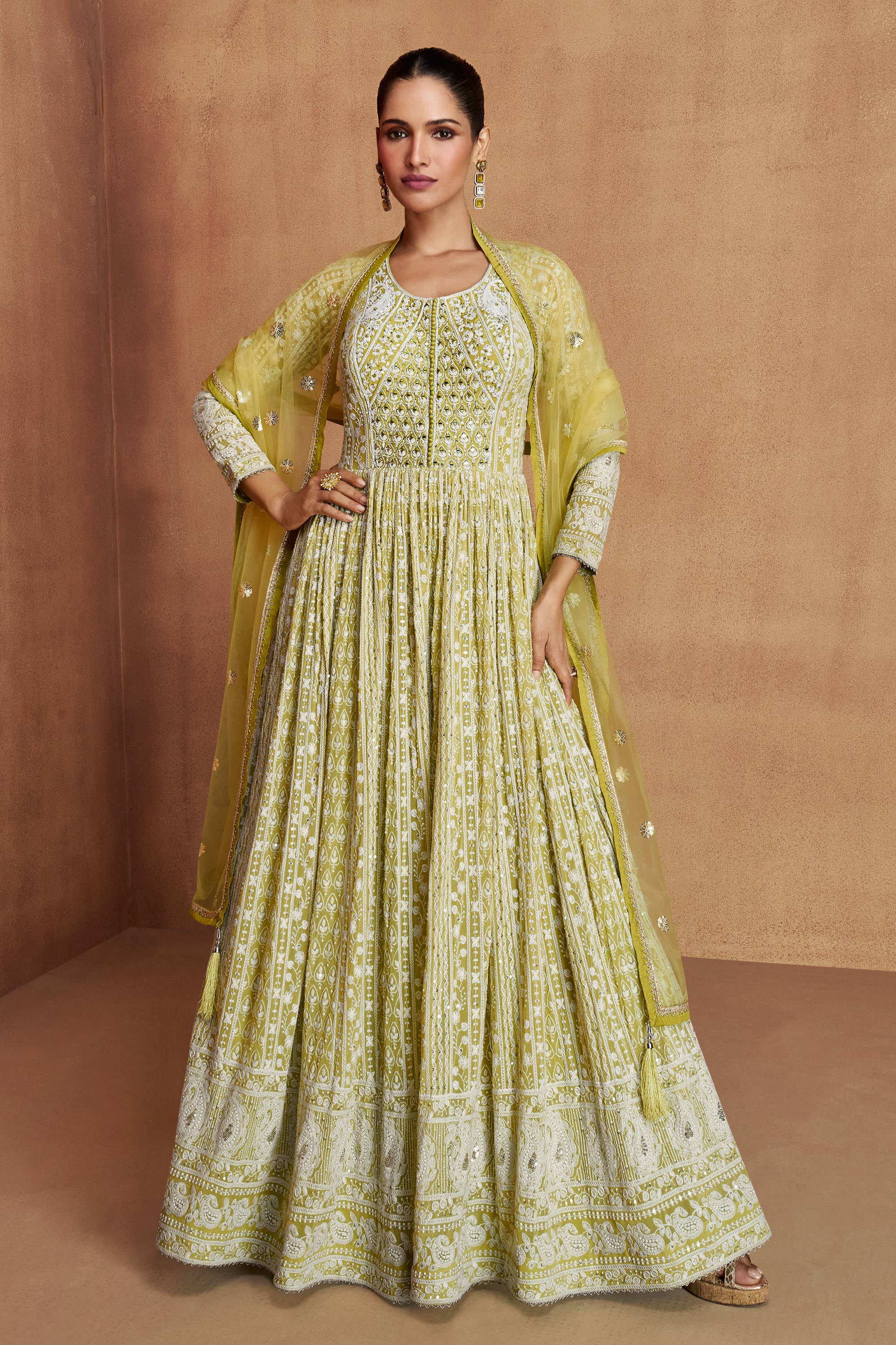 Green Georgette Floor Touch Readymade Anarkali Style Gown With Dupatta