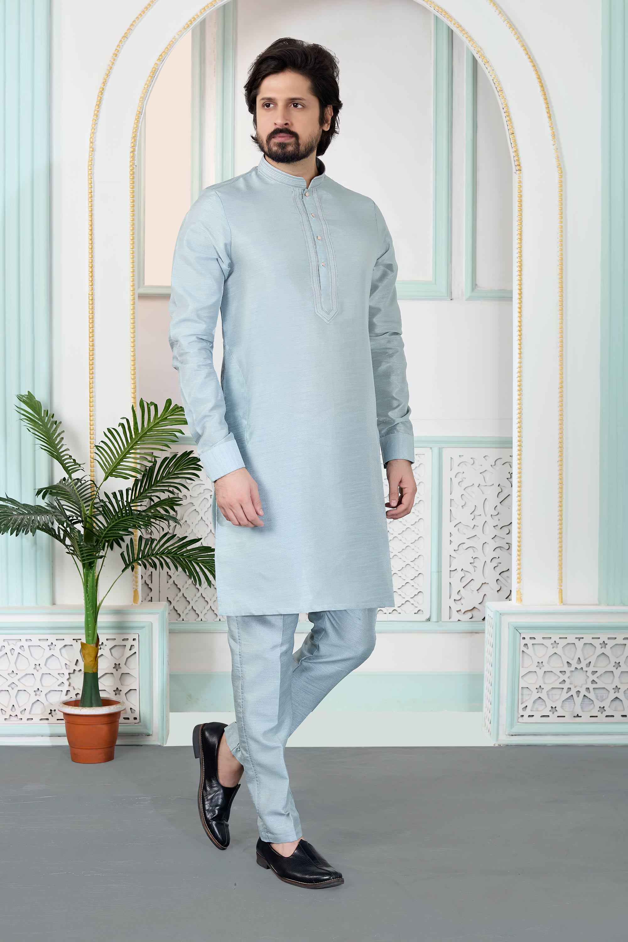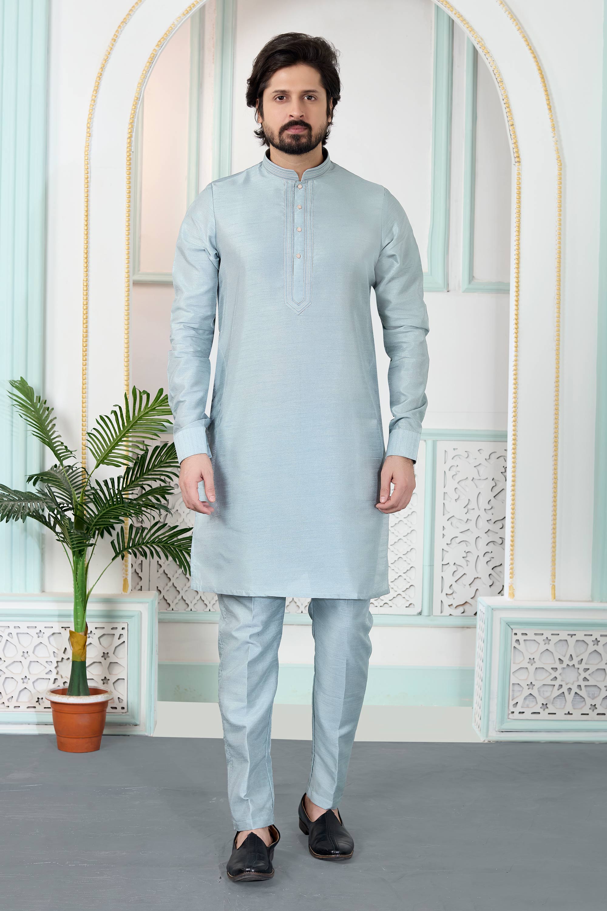 Grey Function Wear Art silk Readymade Kurta With Aligadhi Pant For Men