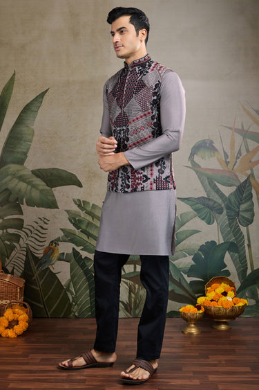 Grey Viscose Silk Function Wear Readymade Men Stylish Kurta With Jacket