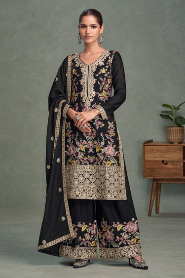Heavy Embroidered Black Readymade Palazzo Salwar Suit
