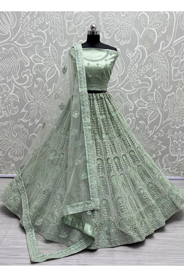 Heavy Embroidered Sea Green Color Bridal Look Fancy Lehenga Choli In Net Fabric