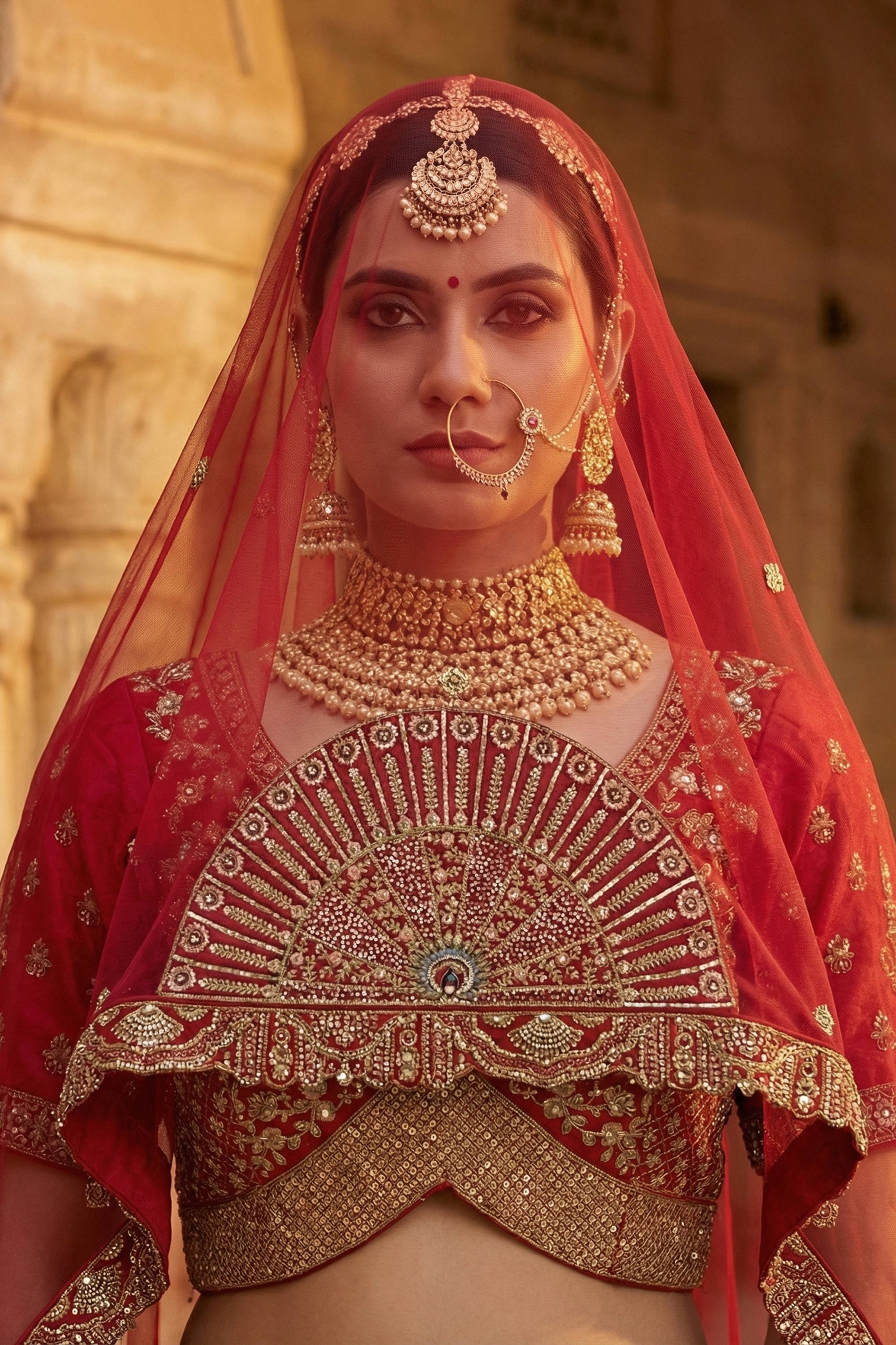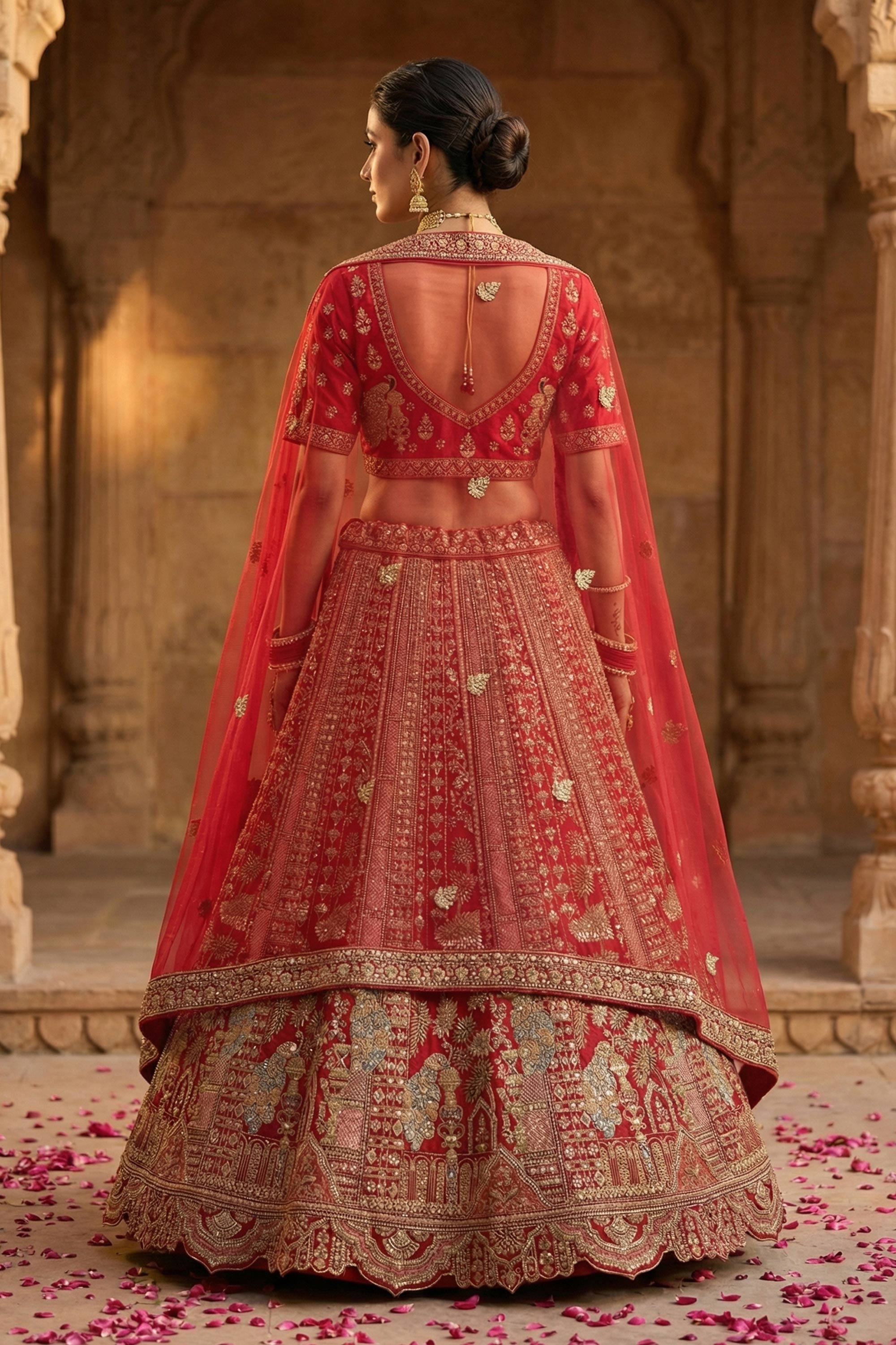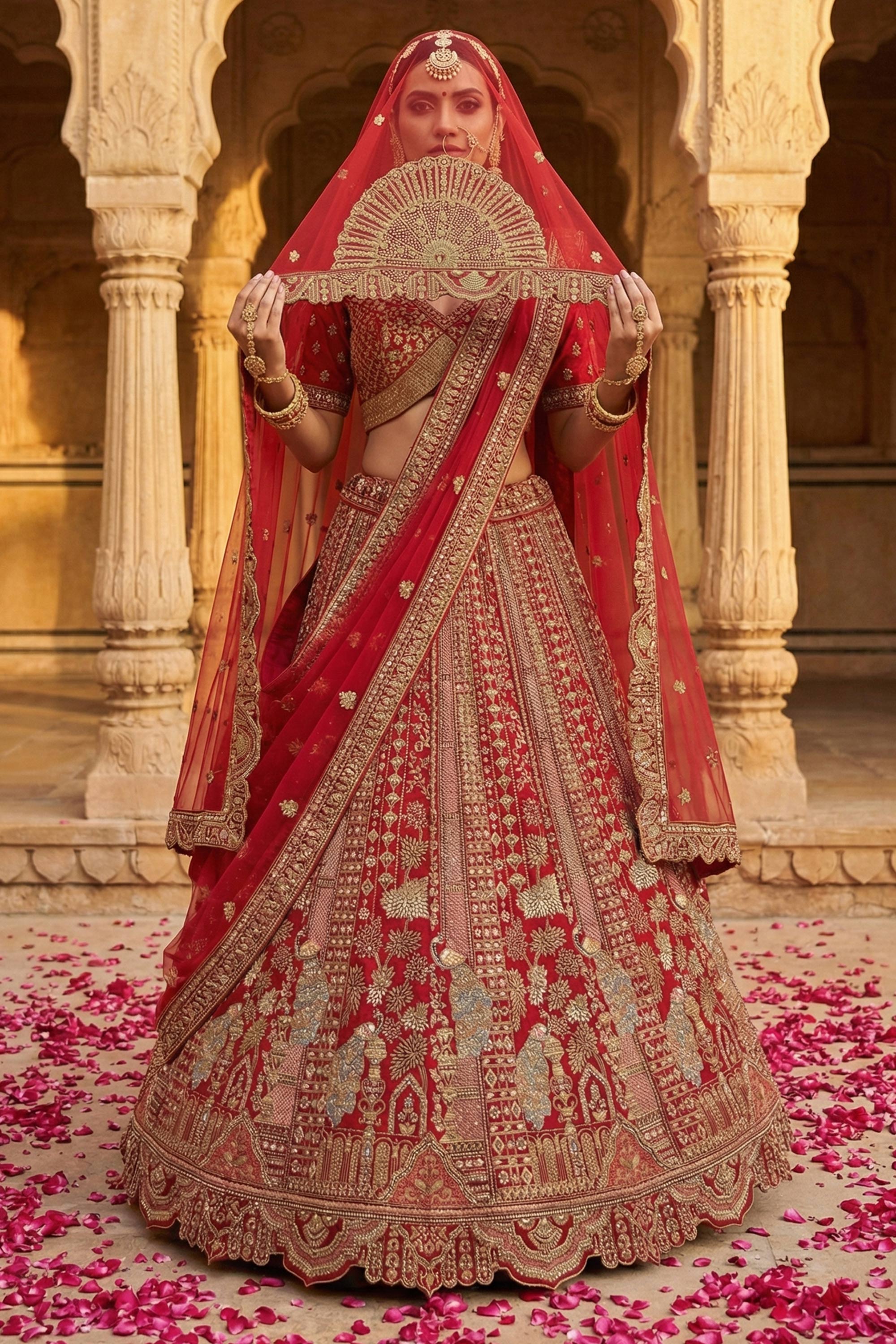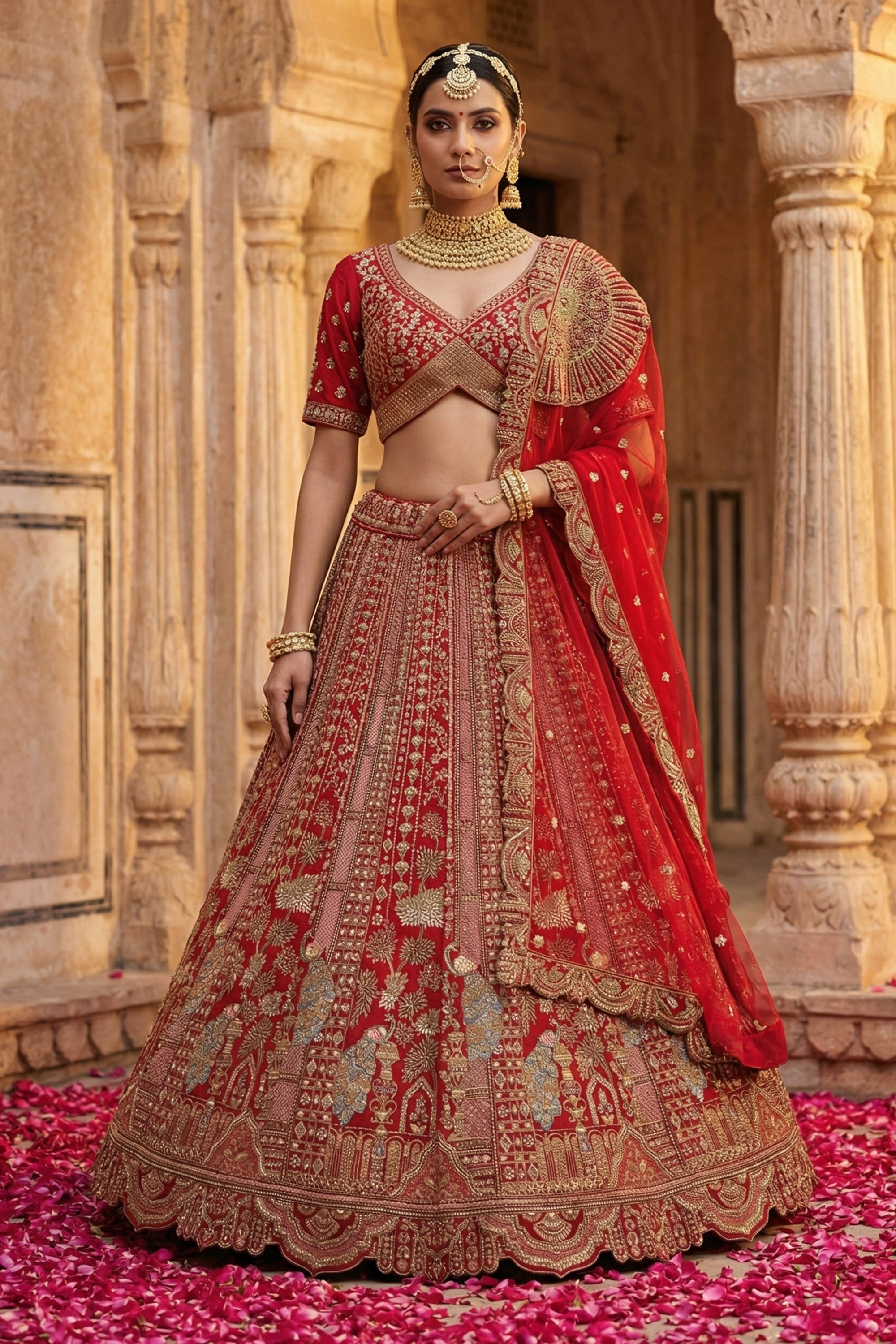 Heavy Embroidered Silk Fabric Red Bridal Lehenga Choli